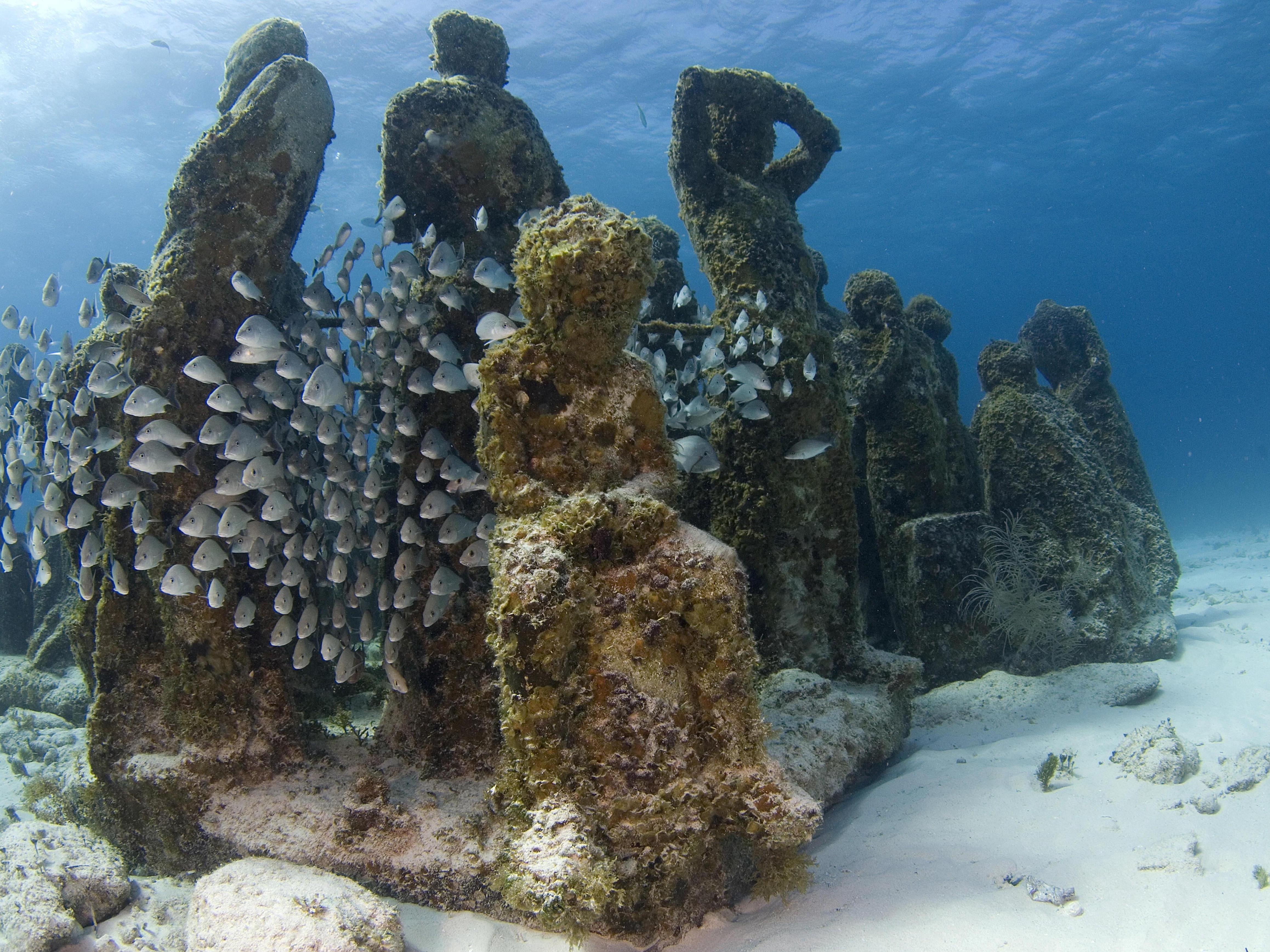 Founded in 2009 off the coast of Cancun in Mexico, the Underwater Museum of Art (MUSA) is the world«s largest collection of underwater sculptures. Over an area of 420 square meters (4,521 square feet) on the Caribbean Sea floor, more than 500 statues are placed, creating a unique ecosystem for marine life.