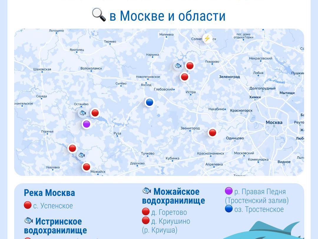 Fish-rich places are an almost sacred topic: experienced fishermen usually guard such coordinates more strictly than bank card passwords. But for us, the FishGO service made an exception and told where Muscovites can go for a good bite. However, in this matter, everything is decided by fortune: once a place becomes popular, dozens of fishermen gather there, and the bite is no longer the same.