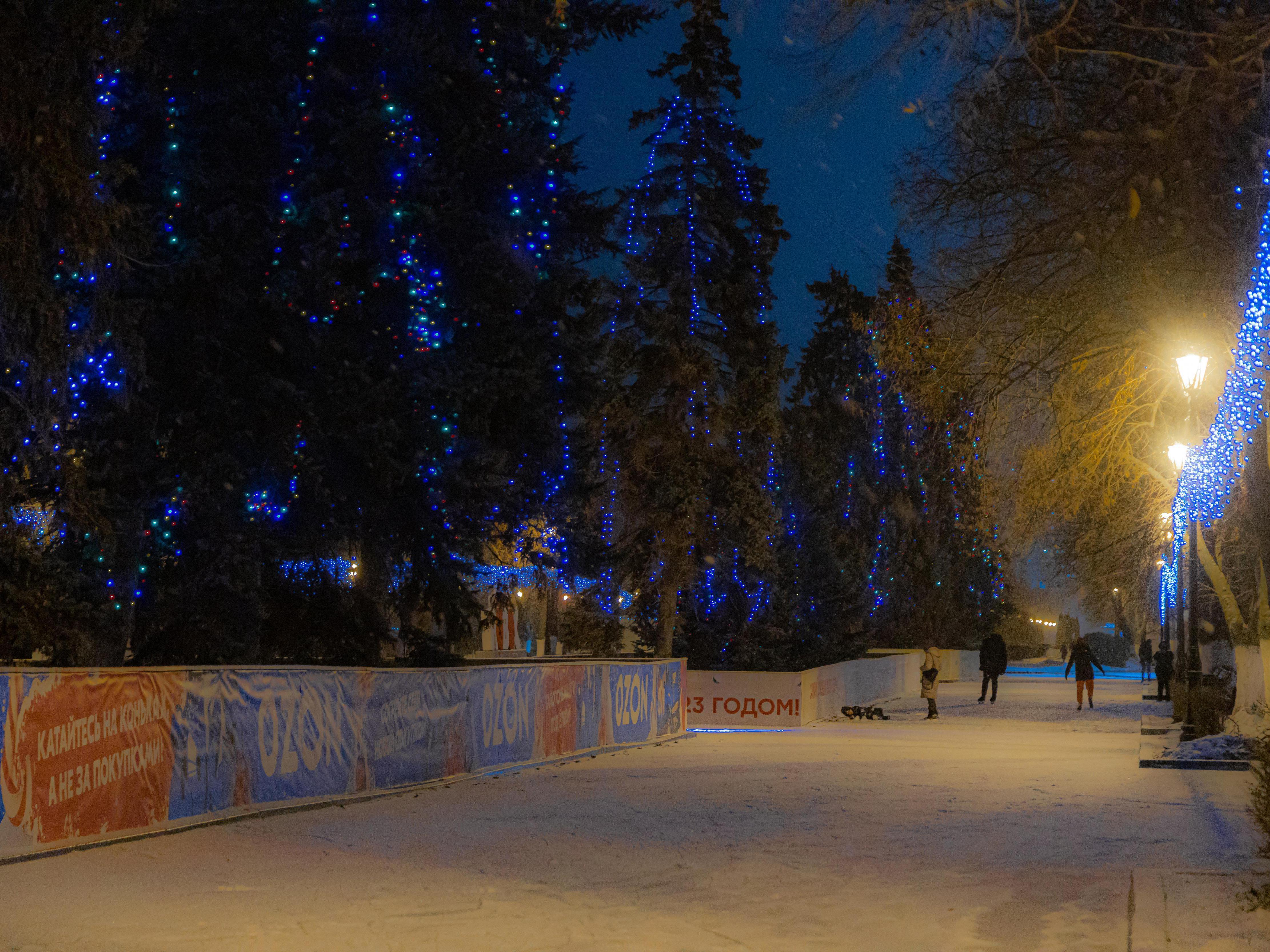 Samarskaya Square. The most beautiful rink. On the embankment, it«s convenient, you can skate without being disturbed by crowds.