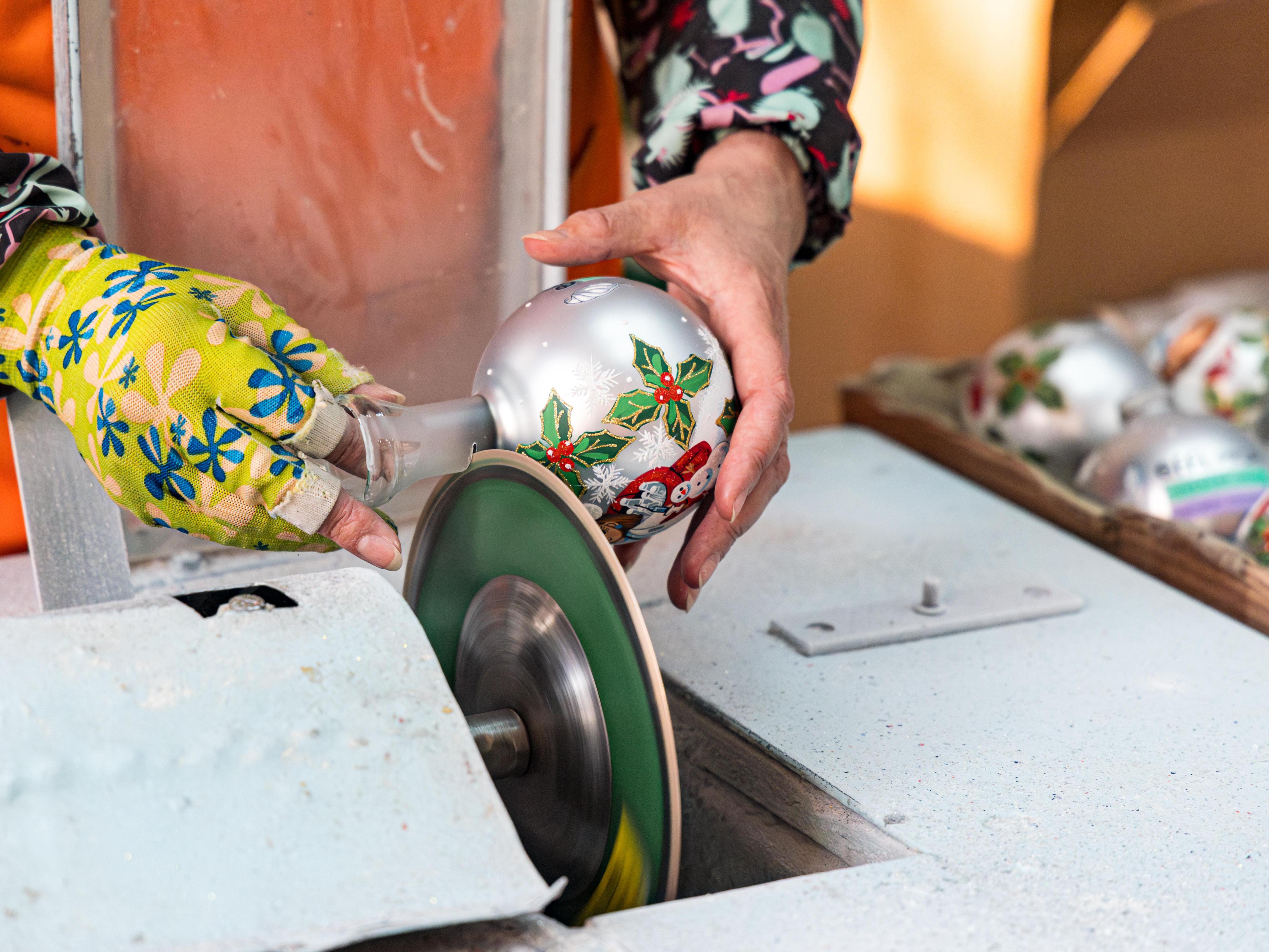 Each glass Christmas ornament at the factory is created entirely by hand and passes through the caring hands of at least five masters.