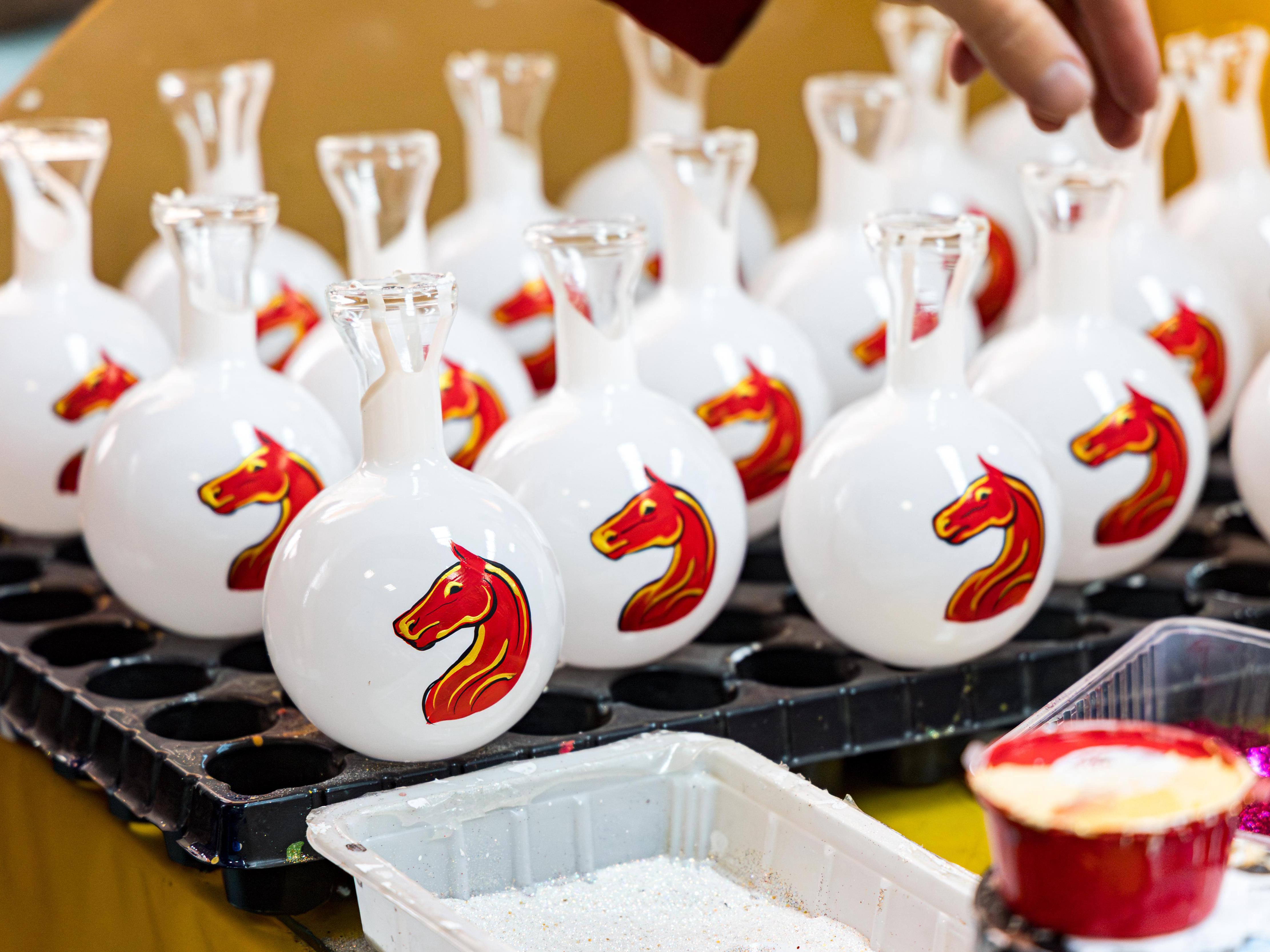 The working day of the craftswomen lasts eight hours. During this time, each blows about 200–250 transparent blanks.