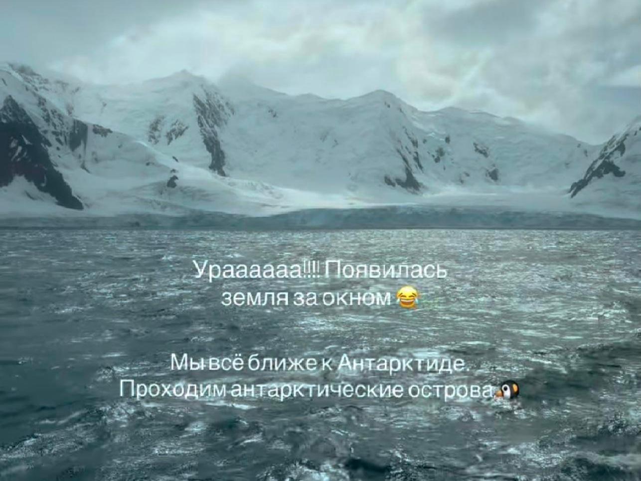 «We are still in the Drake Passage. There is almost no internet, but there are friends and a cheerful company,» Alexei Frolov«s wife Victoria captioned the photo.
