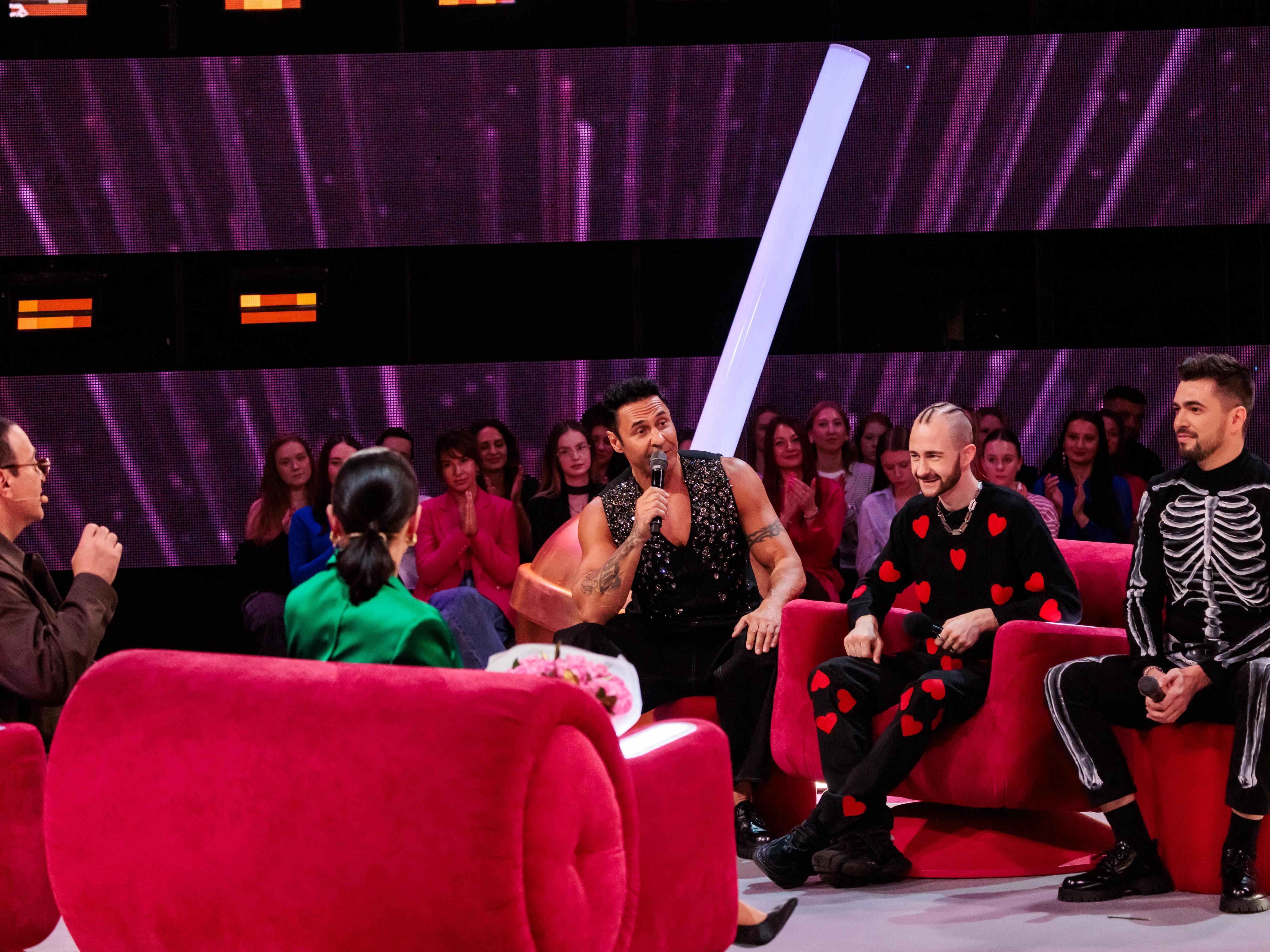 On the show 'Konfetka,' Stas Kostyushkin and Vyacheslav Makarov covered the song 'Raznotsvetnaya.' Olga Buzova called it the best performance of the evening.