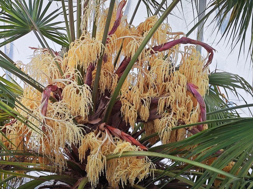 They reported that 12 inflorescences appeared on the palm tree thanks to the fact that several years ago, a glass dome was built on the roof of the Botanical Garden building for its top. On one of its inflorescences, about 130,000 small flowers can be counted. The diameter of each is about 3 millimeters.