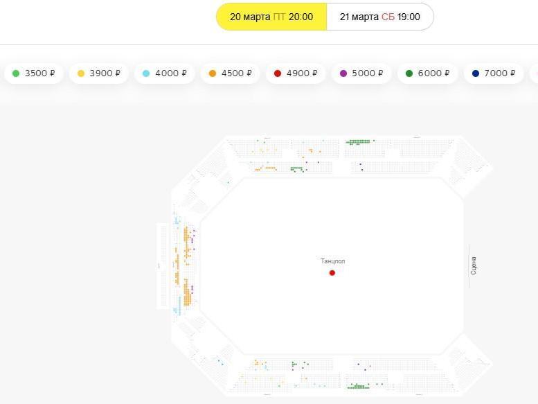For Basta«s first concert on March 20, announced back in autumn, only 238 seats remain in the sectors. Perm residents have bought out tickets for the balcony. Moreover, there are tickets for the dance floor for 4,900 rubles (approximately $49 at current rates), but it»s impossible to know how many are left: the Yandex Afisha service only allows selecting six.