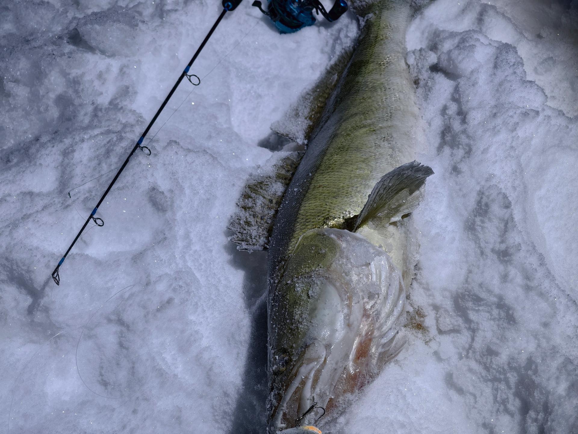 The zander«s substantial dimensions highlight the challenge of winter angling on the Irtysh River.