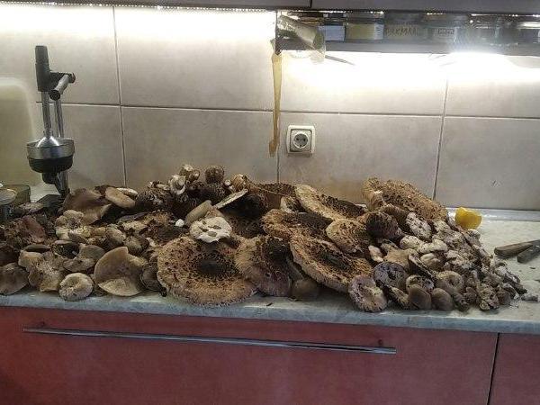 Volgograd mushroom foragers are amazed by their «catch» — what filled a bucket and two bags ended up covering almost the entire countertop! They managed to find so many mushrooms, especially huge parasols, in the Dzerzhinsky district.