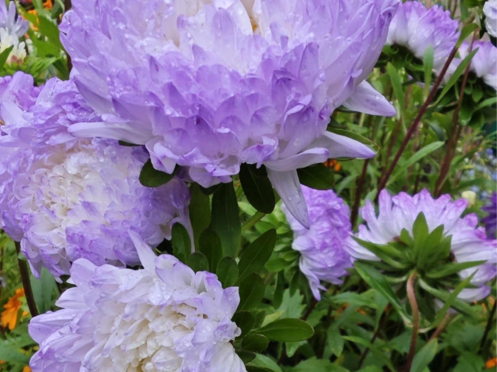 Peony‑type aster varieties contribute color and structure to the summer flower garden.