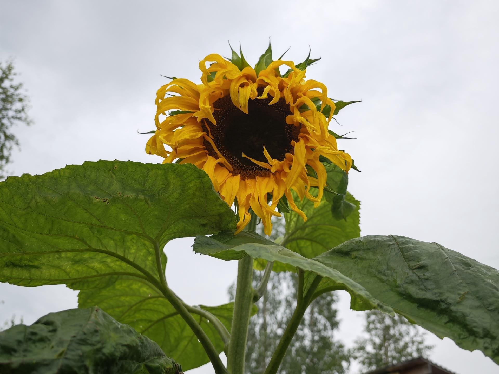 There is another giant on the plot — a sunflower. Elena bought seeds for it from another gardener who last year became a record‑holder with her huge sunflower. Those seeds ended up in our heroine’s hands.