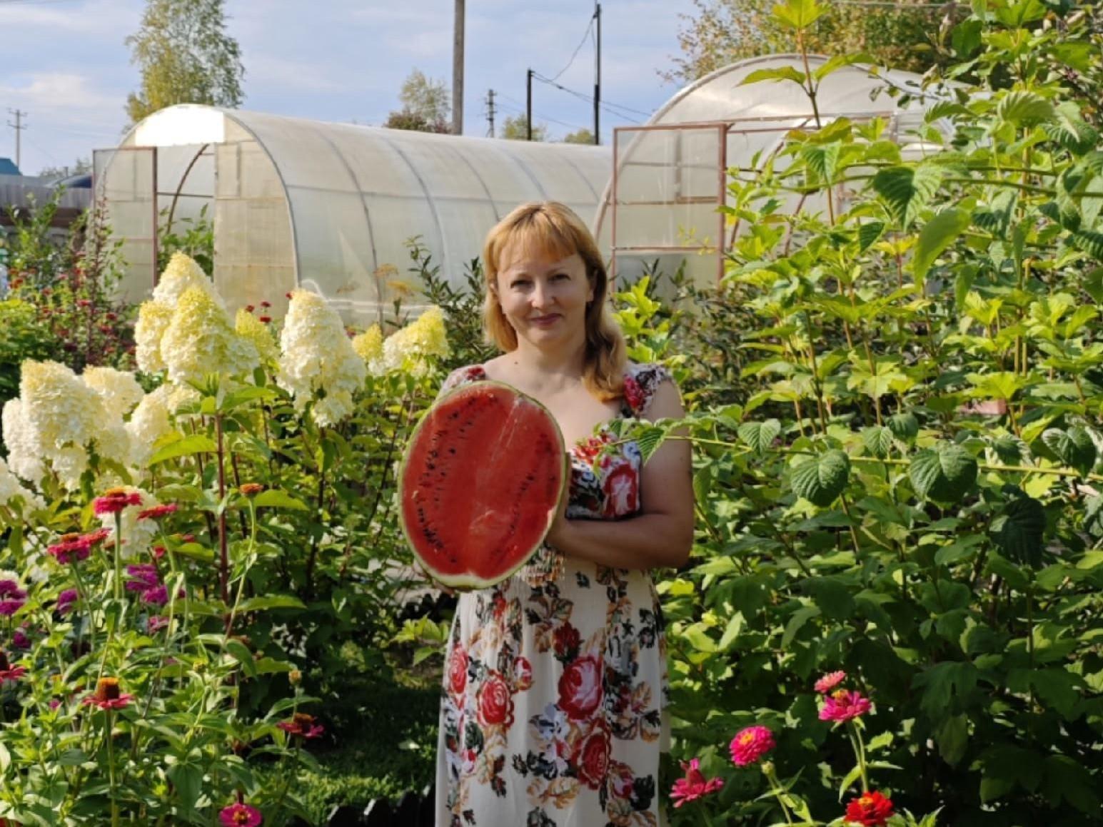 In a season, a single vine can give her up to five watermelons. And they turn out even tastier than southern ones.