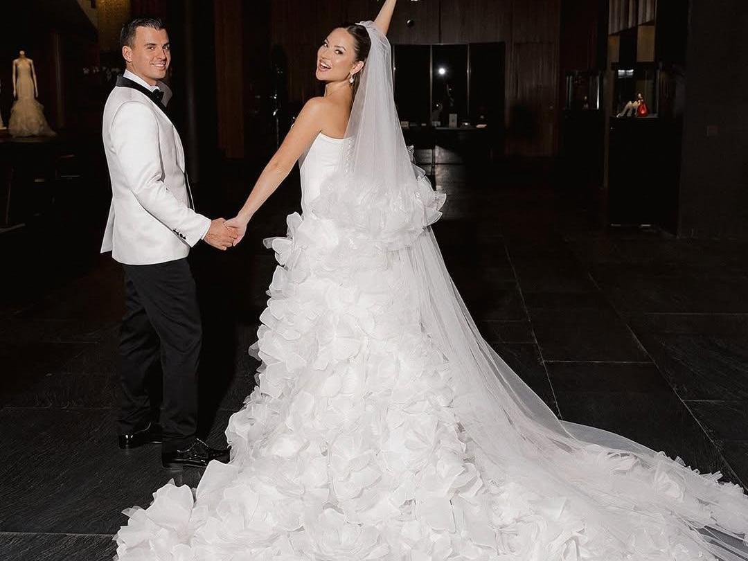 The couple held a full wedding in the autumn of last year. The spouses did not skimp on one of the most important days in life — the celebration was hosted by Nikolai Baskov, the newlyweds« dance was to the live vocals of Alsou, and at the end of the evening, a huge cake completely covered with fresh berries was brought out.