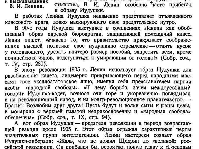 Lenin highly valued Saltykov-Shchedrin, often using his images in polemics. A 1939 literature textbook even included a sub-chapter titled «The Image of Judas Golovlyov in the Statements of V. I. Lenin.»