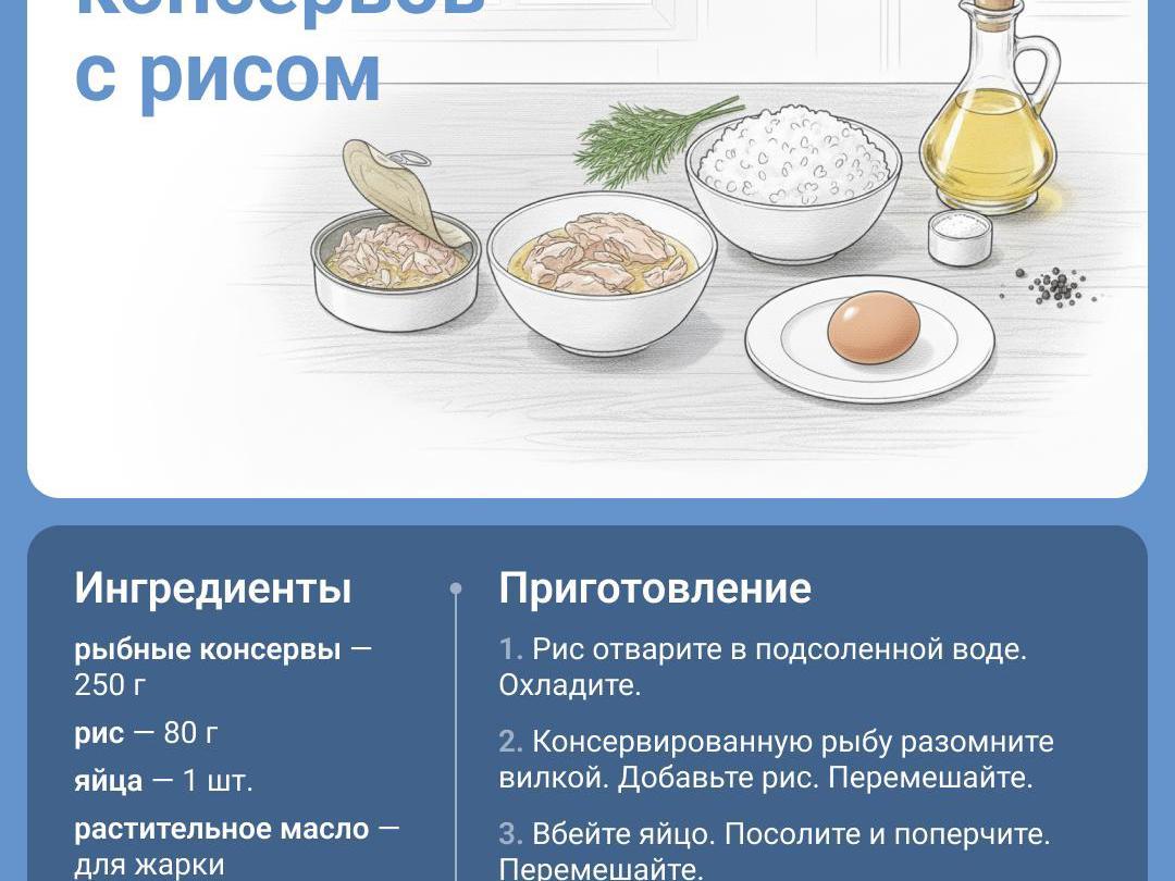Fish cutlets can also be made from canned fish. Even a beginner can handle this dish. It«s better to use round rice, and any canned fish to your taste, for example, saury. Preferably, the fish should be in oil or in its own juice. If the mince turns out too liquid, you can add a couple of tablespoons of semolina and leave for 15–20 minutes for it to swell. The cutlets can be served with any side dish or a fresh vegetable salad.