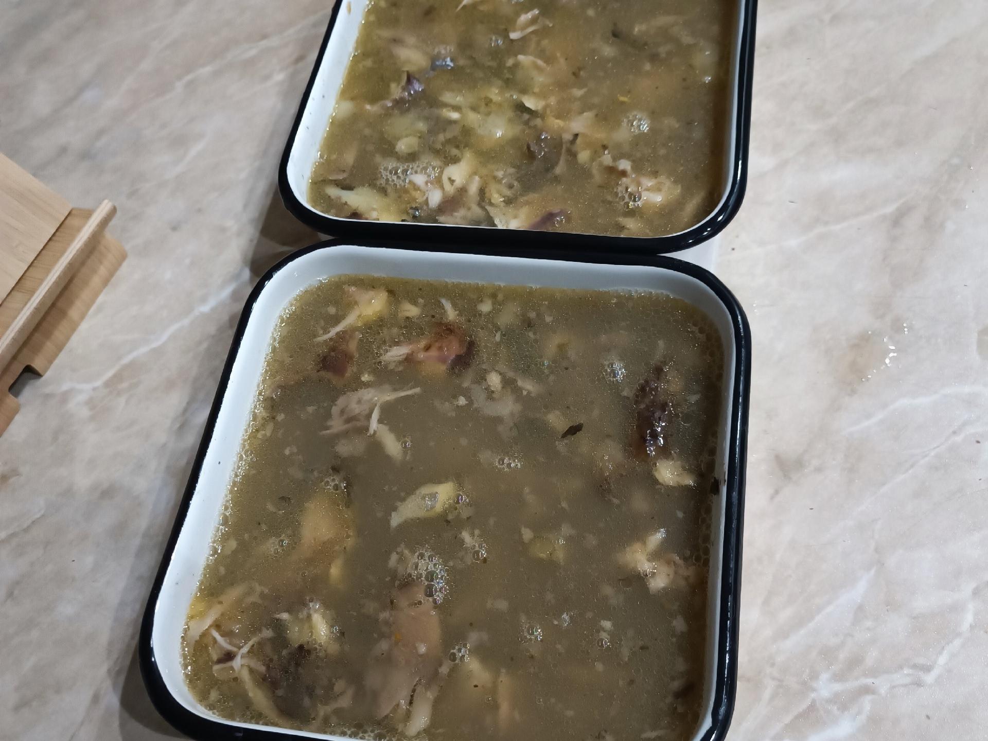 «We are cooking aspic from carp heads and tails today. Cover the fish with water so it»s just submerged. Simmer on low heat, with the water just barely moving, for about an hour. Add salt and spices to taste; you can add peppercorns and a bay leaf. Take out the fish and separate it from the bones. Arrange it in containers and pour the broth over it. You can place herbs and lemon slices on top. Refrigerate until set. See how it turns out. It sets perfectly, even without gelatin,« the man assures. »You can serve it with mustard and black bread.«