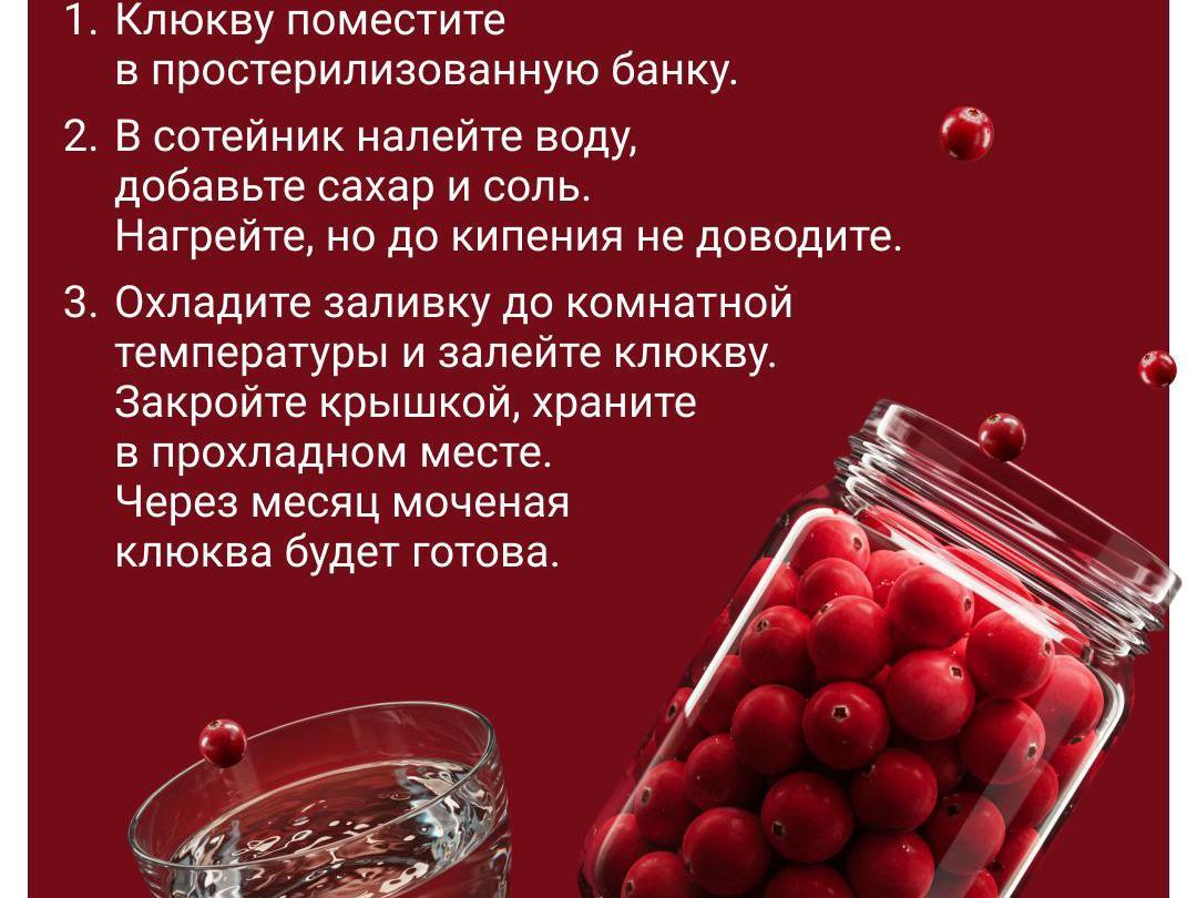 Soaked cranberries are great because they retain their beneficial properties, taste, and aroma. This preservation method allows the berries to keep for up to a year. Add soaked cranberries to sauerkraut and salads. They pair well with meat or poultry, lending dishes unusual flavor notes. They also work nicely as a topping for sweet ice cream.
