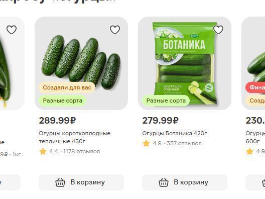 - Magnit sells mid-fruited cucumbers at a discount for 134.99 rubles per 500 grams (about $1), short-fruited — for 224.5 rubles (about $2).