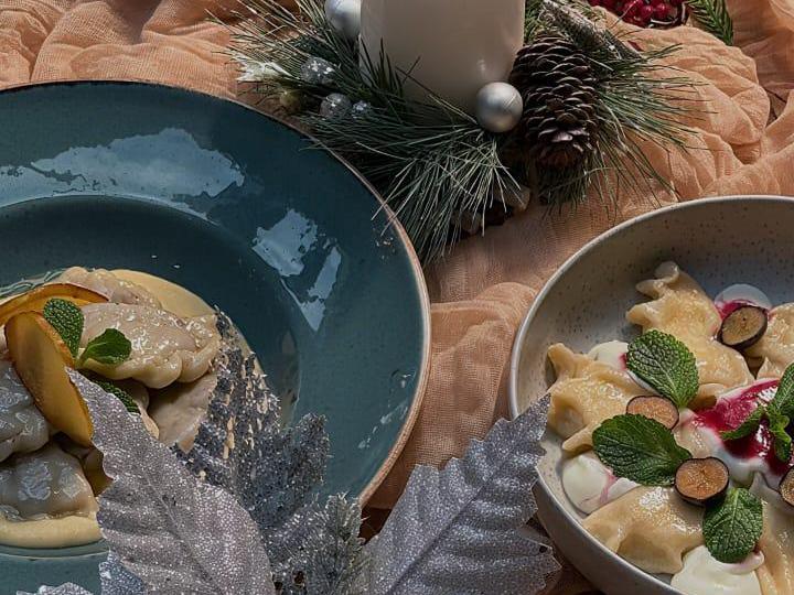 Olesya Forkosh suggests diversifying the holiday table and preparing dumplings with caramelized quince and Camembert mousse.