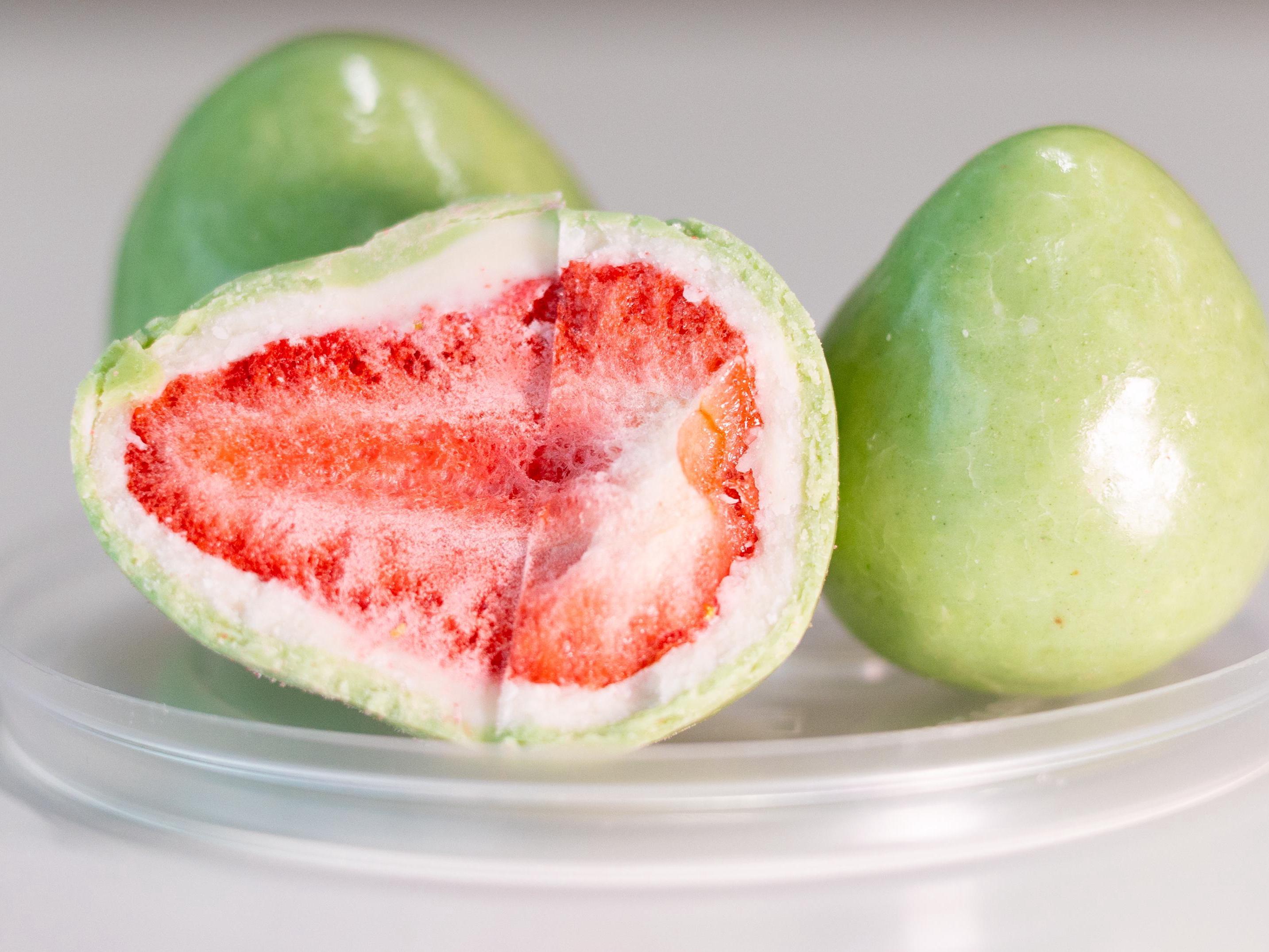 In fact, limeberry is just freeze-dried strawberries (that is, dried at low temperatures), and the prefix «lime» in the name comes from the flavored colored chocolate glaze.