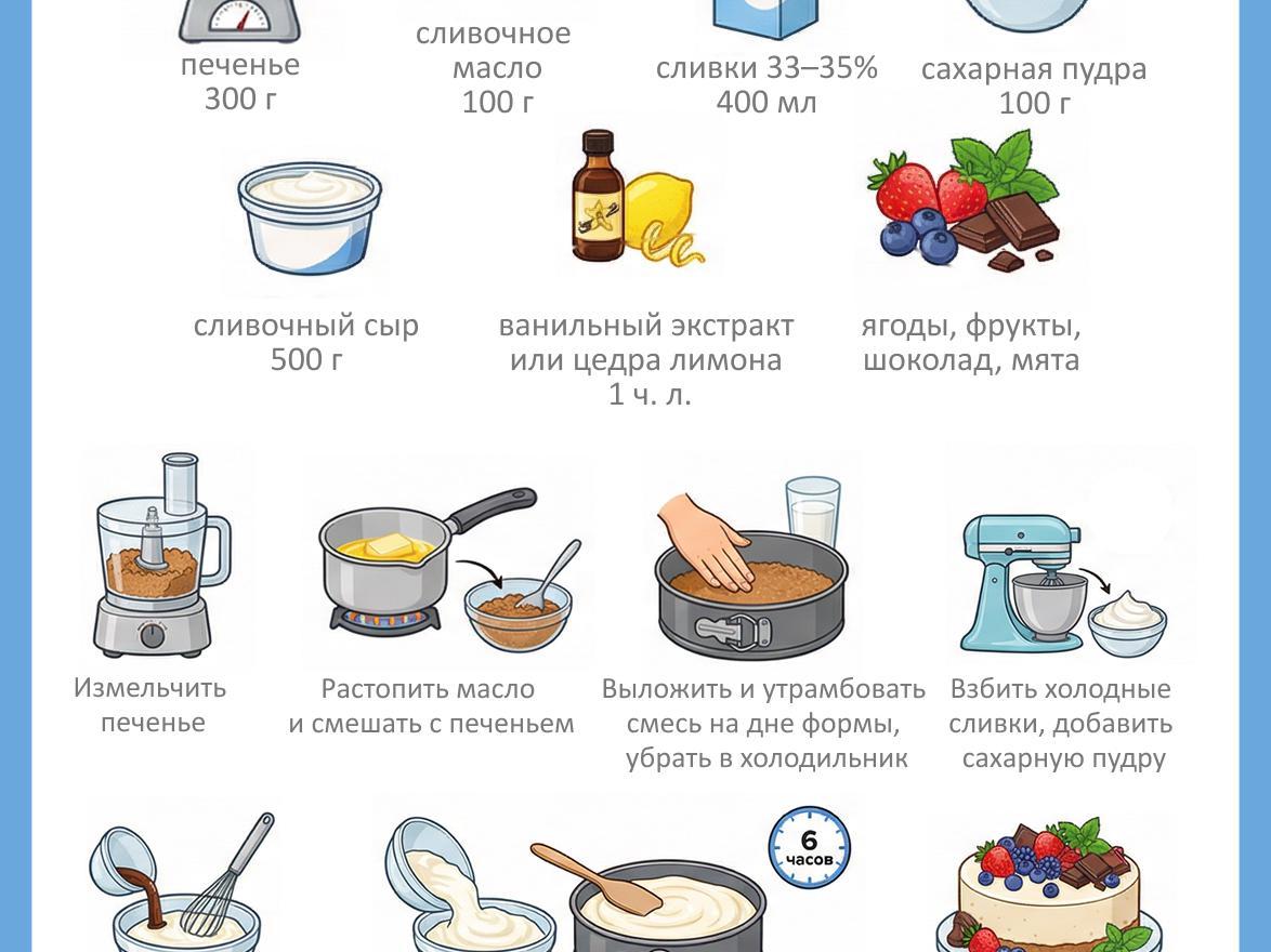 The secret to this dessert«s success lies in the contrast of textures and balanced flavor. The crispy, buttery, slightly sweet cookie base perfectly complements the delicate, cloud-like filling. The cream cheese provides a pleasant, barely perceptible tang and density, while the whipped cream gives it unparalleled airiness and lightness. This duo simply melts in your mouth without leaving a feeling of heaviness. And the opportunity for creativity in decorations makes each cake unique.
