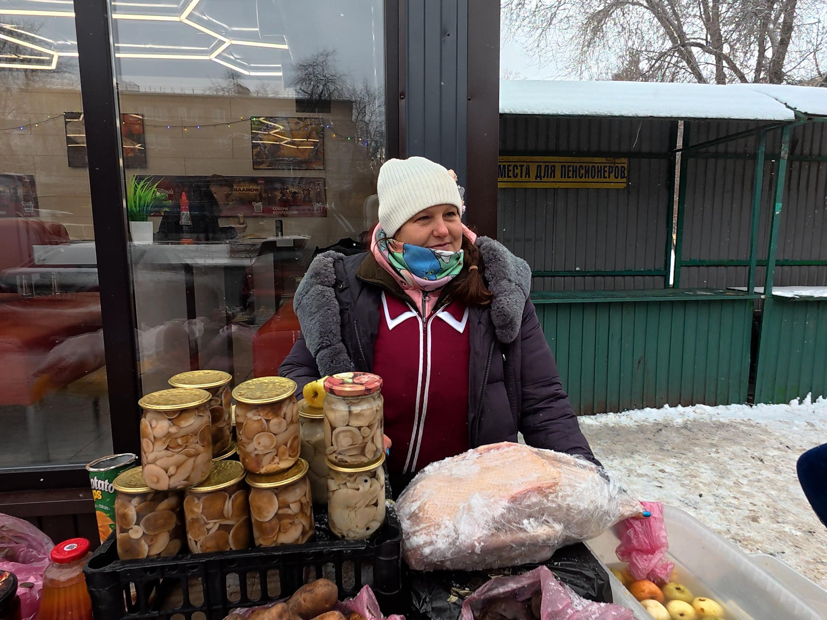— I work as a social worker 3 times a week, and in free time I come to Samara to trade, so that I can set the table for holidays and all other days. On our menu for the New Year, everything we grew. Potatoes? Have! Pickles? Please! Meat — pork, beef, rabbit, chicken — have. Mushrooms of our own salting. Well, for red caviar, maybe we«ll earn, — Elena gestures around the counter with huge goose carcasses, potatoes, soaked apples, jars of pickles and jams. — Everything from our homestead. I grow it myself, I process it myself.