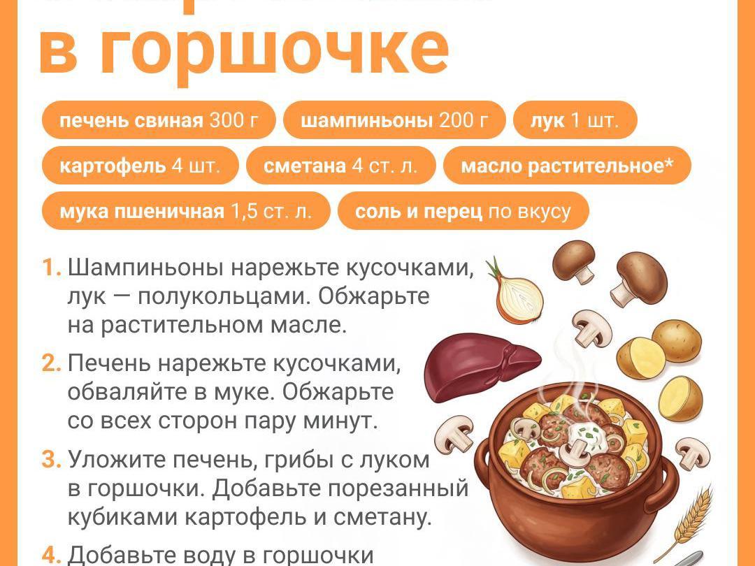 Potatoes with pork liver in pots are a great and simple dinner or lunch for every day. If desired, you can add tomatoes, bell peppers, and various spicy spices to the dish. It all depends on your imagination and taste. Button mushrooms can be replaced with wild mushrooms.