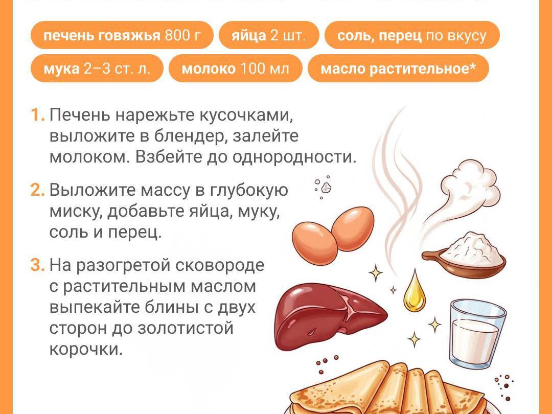 Beef liver pancakes can be served as a main dish, with any side, or used as layers for a liver cake, with vegetable fillings. These pancakes are sure to please even those who can«t stand liver. Sour cream, mustard-cream, or tomato sauce work well as accompaniments.