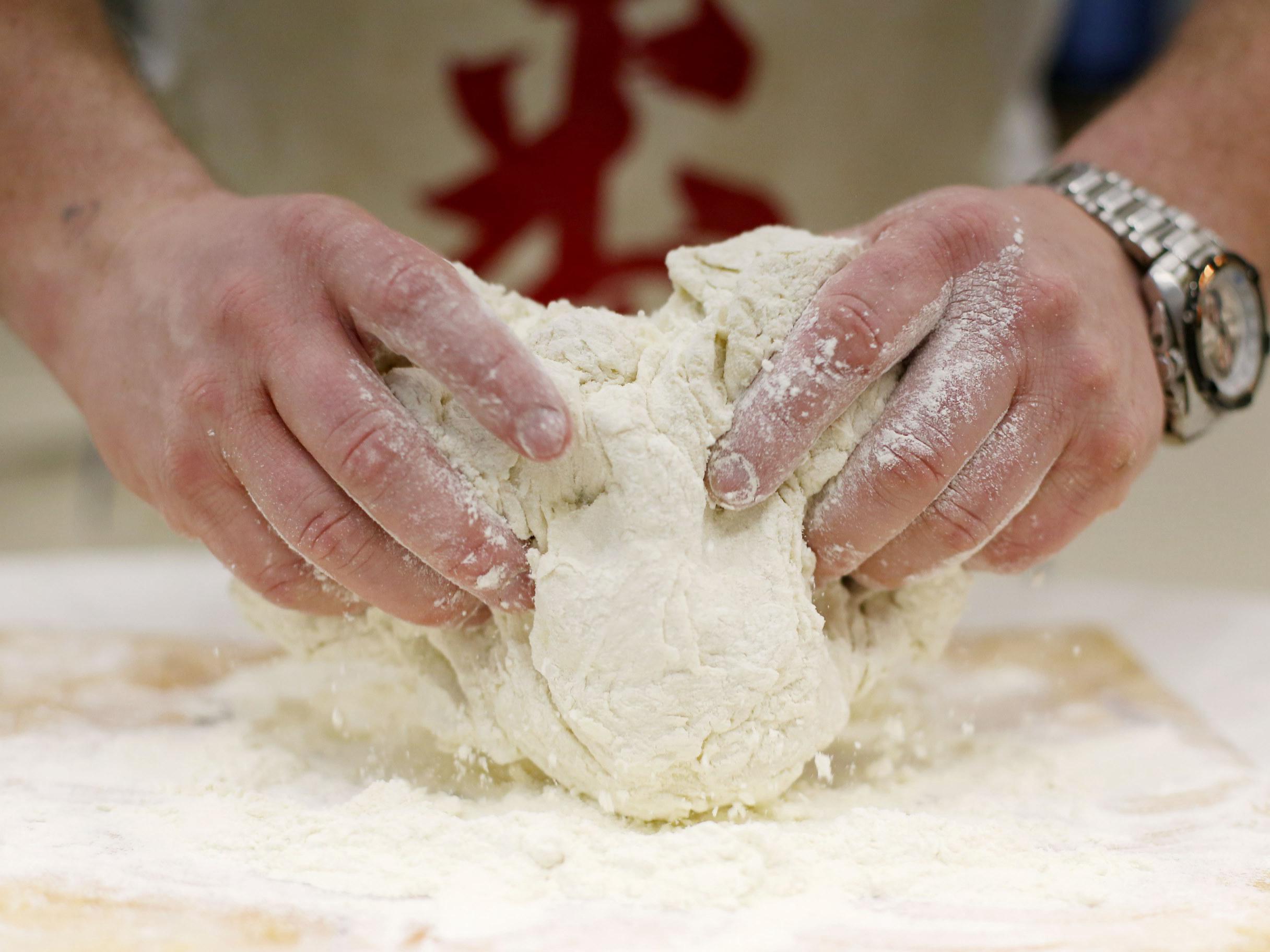 After that, gather the dough into a ball, place it in a bowl, cover with a towel, and put it in a warm place for 1 hour. During this time, it will grow two to three times in size.