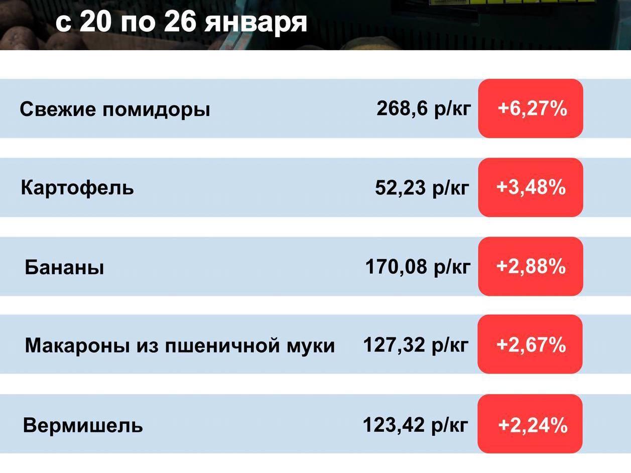 fresh cucumbers (+1.29%) — 301.34 rubles (about $4 at current rates).