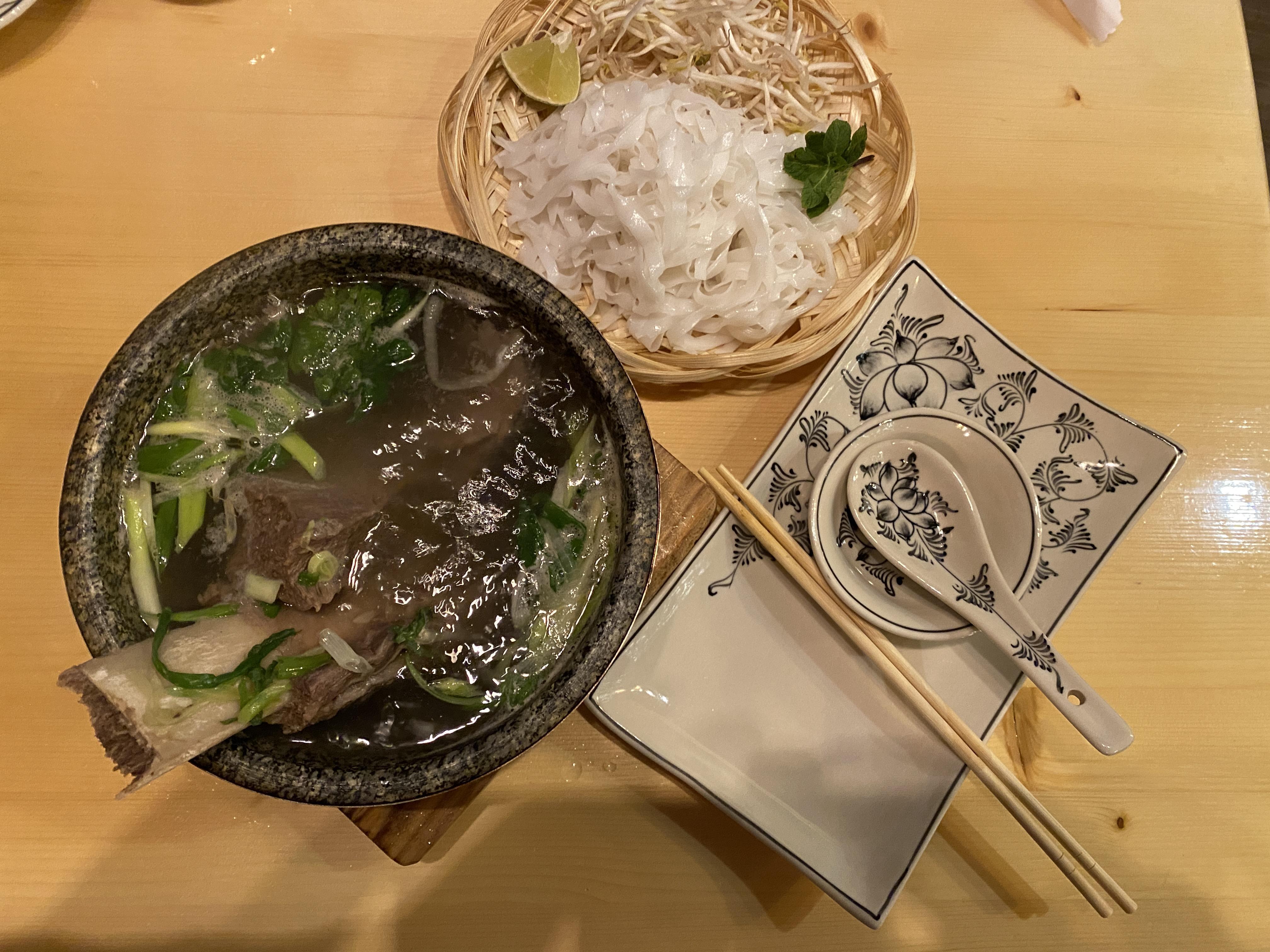 Prices for pho-bo start from 300 rubles (about $3 at current rates). Besides the obligatory program in the form of noodle soups, nem rolls, salads, and fried rice, here you can order just cutlets (they don«t even have any Vietnamese name) and braised pork ribs. The dish might be unpretentious, but it»s hearty: includes meat, rich broth, and cabbage salad with rice.