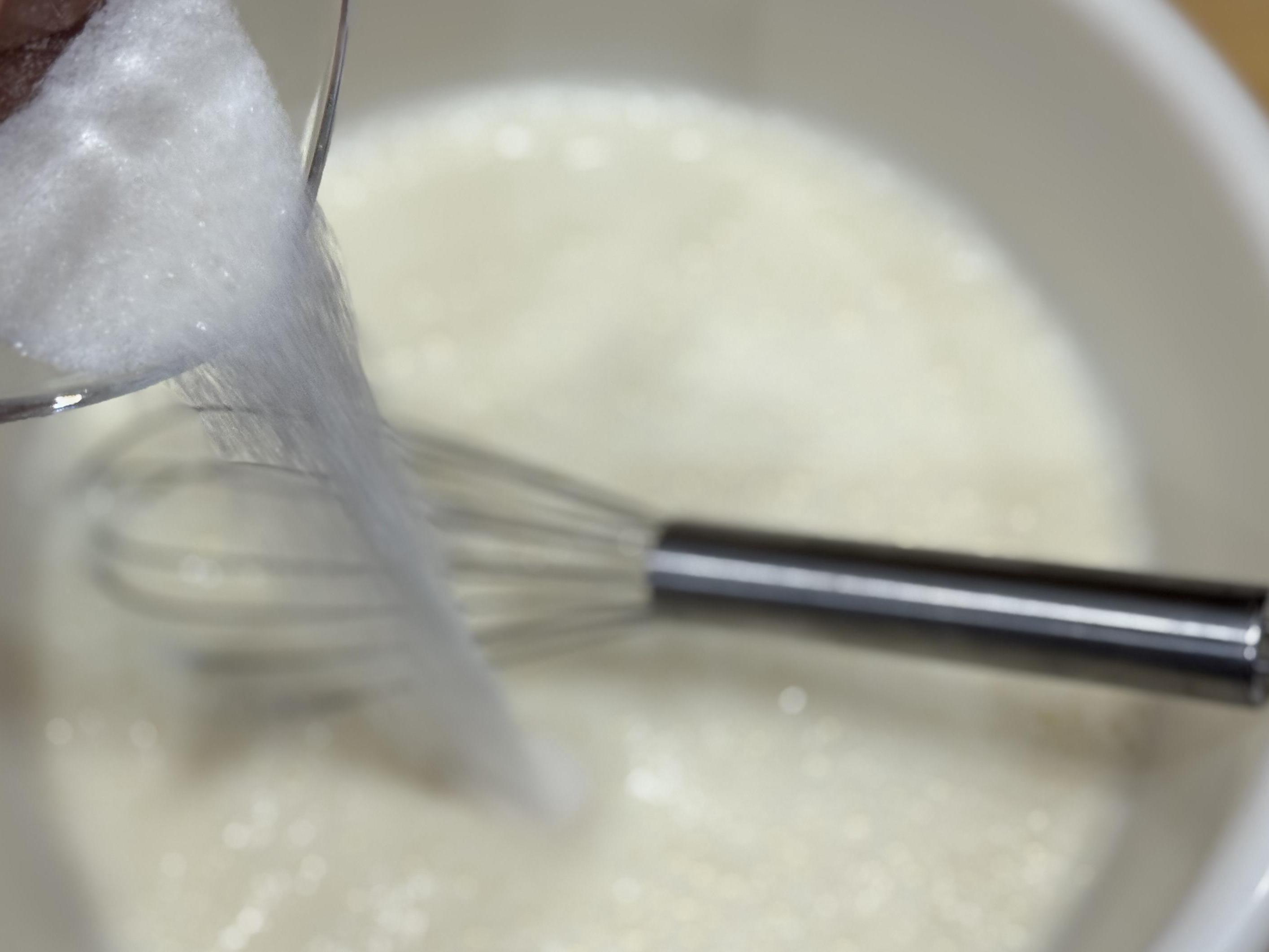 After that, pour in the milk and also whisk. The next step is sugar. After adding each new ingredient, be sure to whisk the batter slightly.