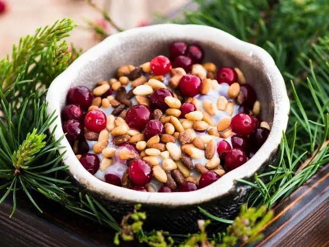 A very simple, tasty, and healthy dessert made from the riches of Yugra«s forests — pine nuts and lingonberries. And it only has three ingredients.