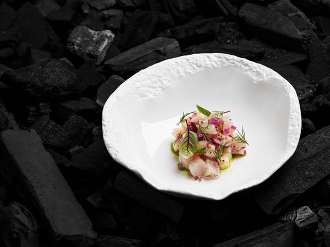 Appetizer. Sugudai from Nelma with Pickled Green Apples