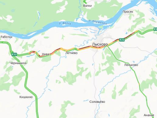 On the afternoon of 29 January, a major traffic jam formed on the M-7 highway in the Lyskovo district. According to online maps, traffic is congested on a stretch of nearly 30 kilometers.