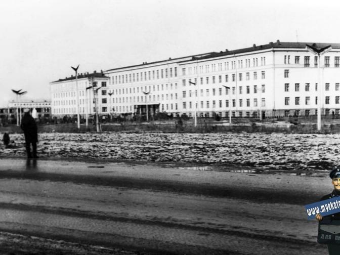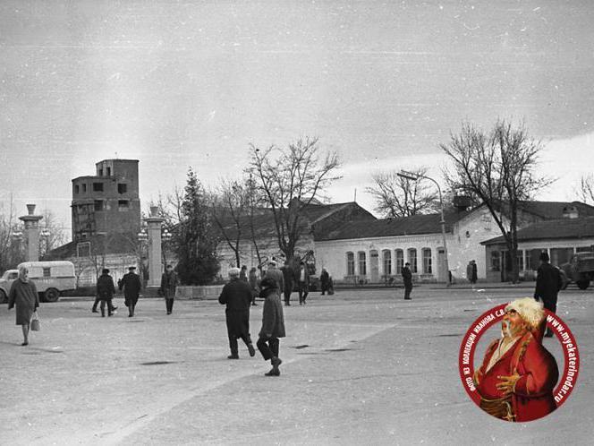 The corner of Krasnaya and Budyonny streets on January 8, 1967, showing a mill later replaced by the city administration.