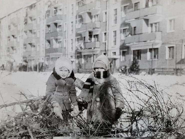 In January 1965, adults built a snow slide for children in a courtyard on Gudima Street, also known as Nasypnaya Street.