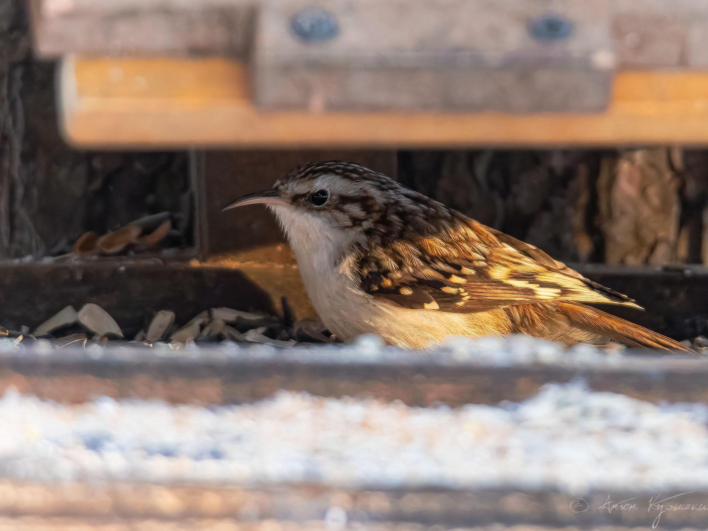 Thus, on one of the feeders, observers noticed a pika — a bird from the order Passeriformes. Photographer Anton Kubyshkin, who has been watching birds for six years, shared his impressions: «I myself am seeing this for the first time in six years of birdwatching. By and large, it has no business at a feeder. This little bird is famous for constantly crawling up tree trunks in a spiral, peeking into every crevice under the bark. There it searches for insects and their larvae. With its long, thin, pincer-like beak, it very skillfully extracts prey hidden deep within the tree bark. And this is what it does its entire life. I have never seen it obtain food by any other method. But, after watching other birds, it decided that feeders are suitable for it too. Maybe there’s a breeding ground for some larvae there, or maybe it’s eating grain or crumbs — that will remain a mystery.»