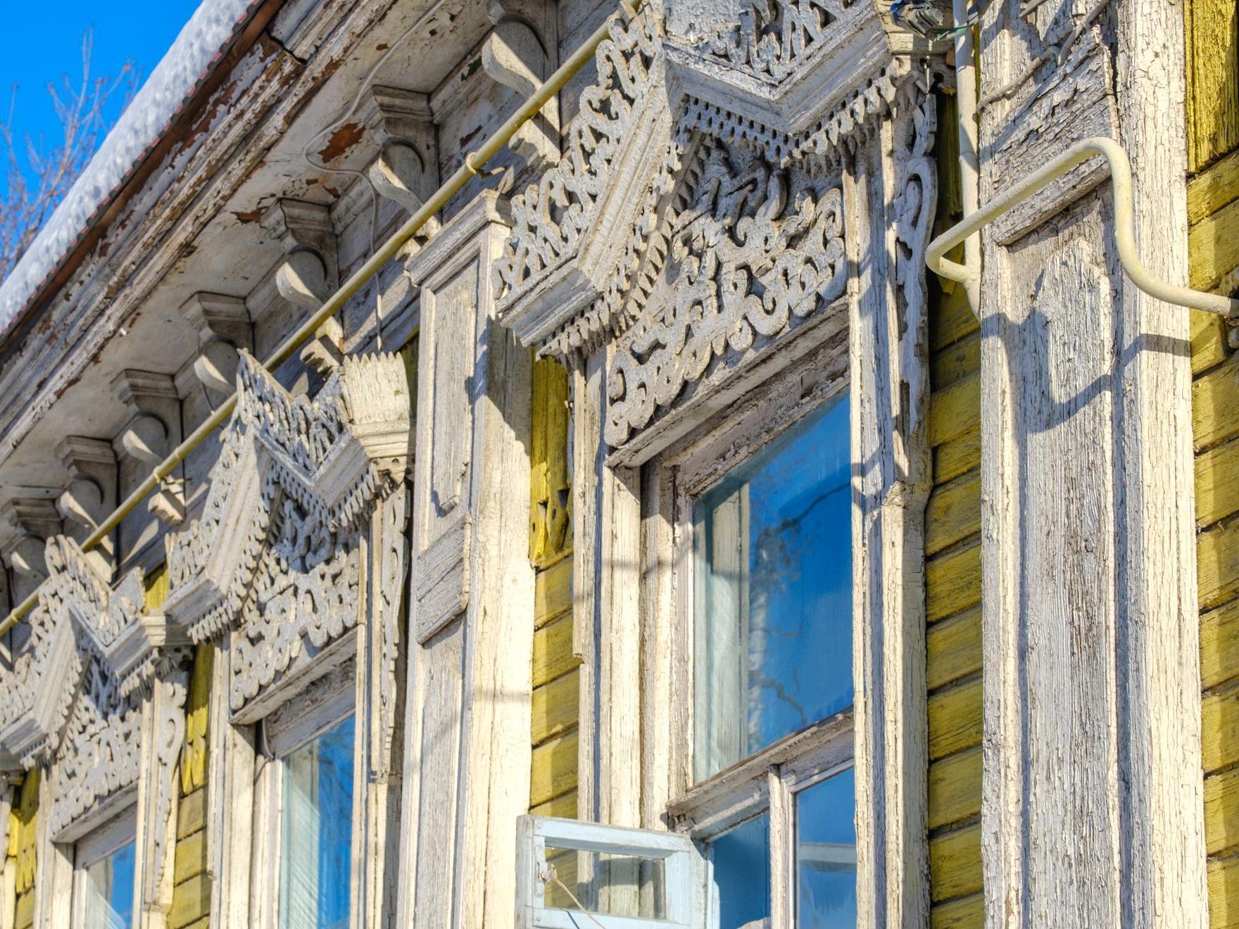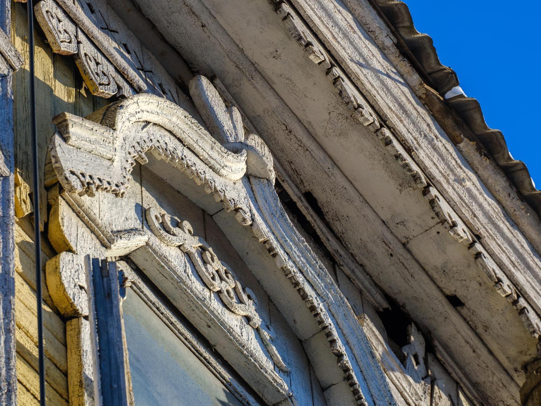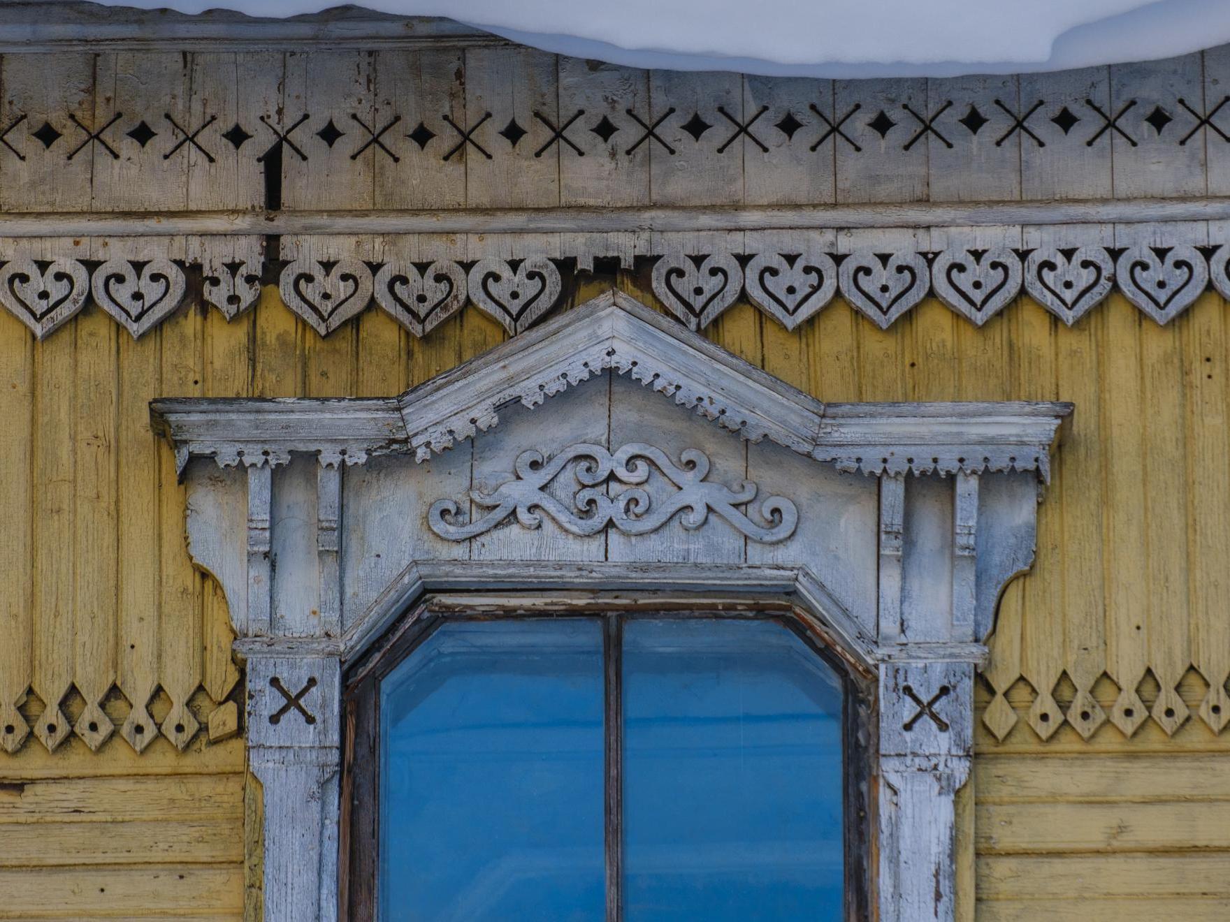 But despite this, beauty can still be found here, such as elements of wooden architecture. On many houses, carved window frames have been preserved. Every house is a work of art! Inside, of course, there«s not much for the eye to catch on, except where an old stove remains, or Soviet-era wallpaper and occasional stucco on the ceiling. However, everything is steeped in history and the daily life of old times.