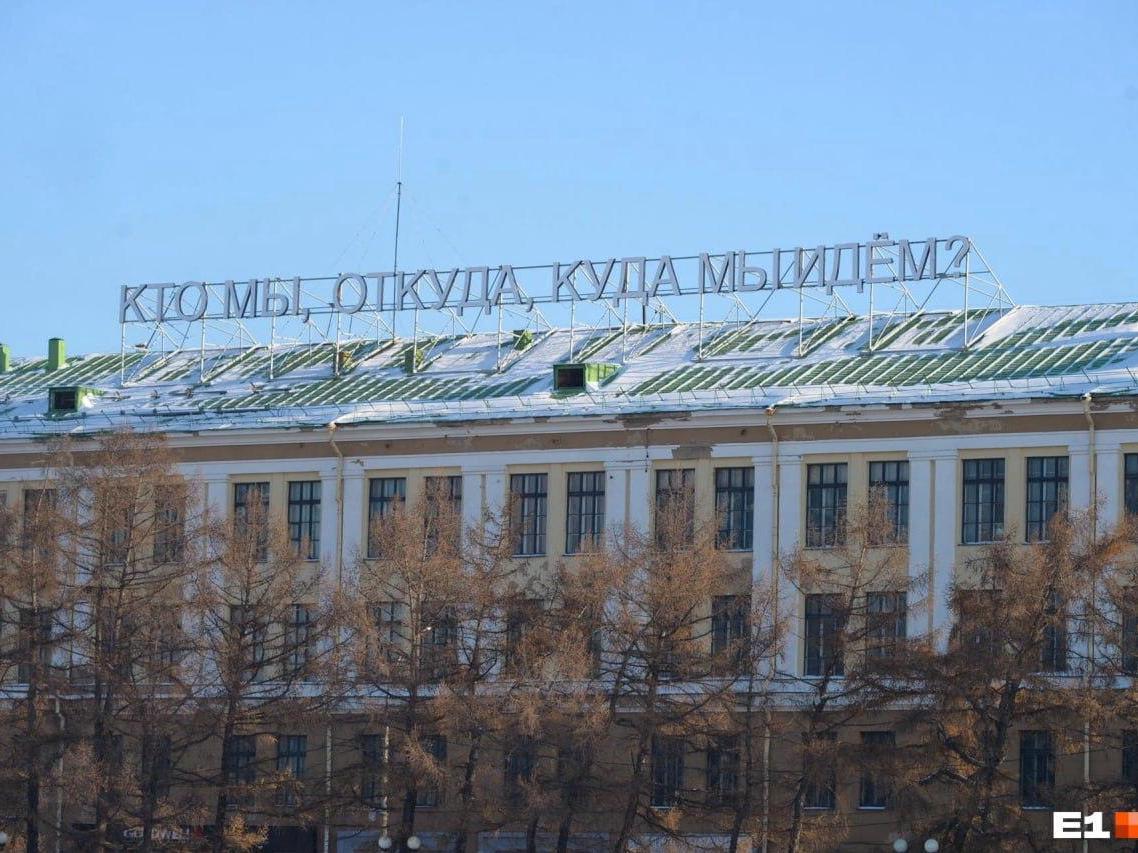 In Yekaterinburg, it has been decided to move an art object with the philosophical inscription «Who are we, where from, where are we going?». The work by artist Timofey Radya will leave the roof of the building where it has been since 2017.