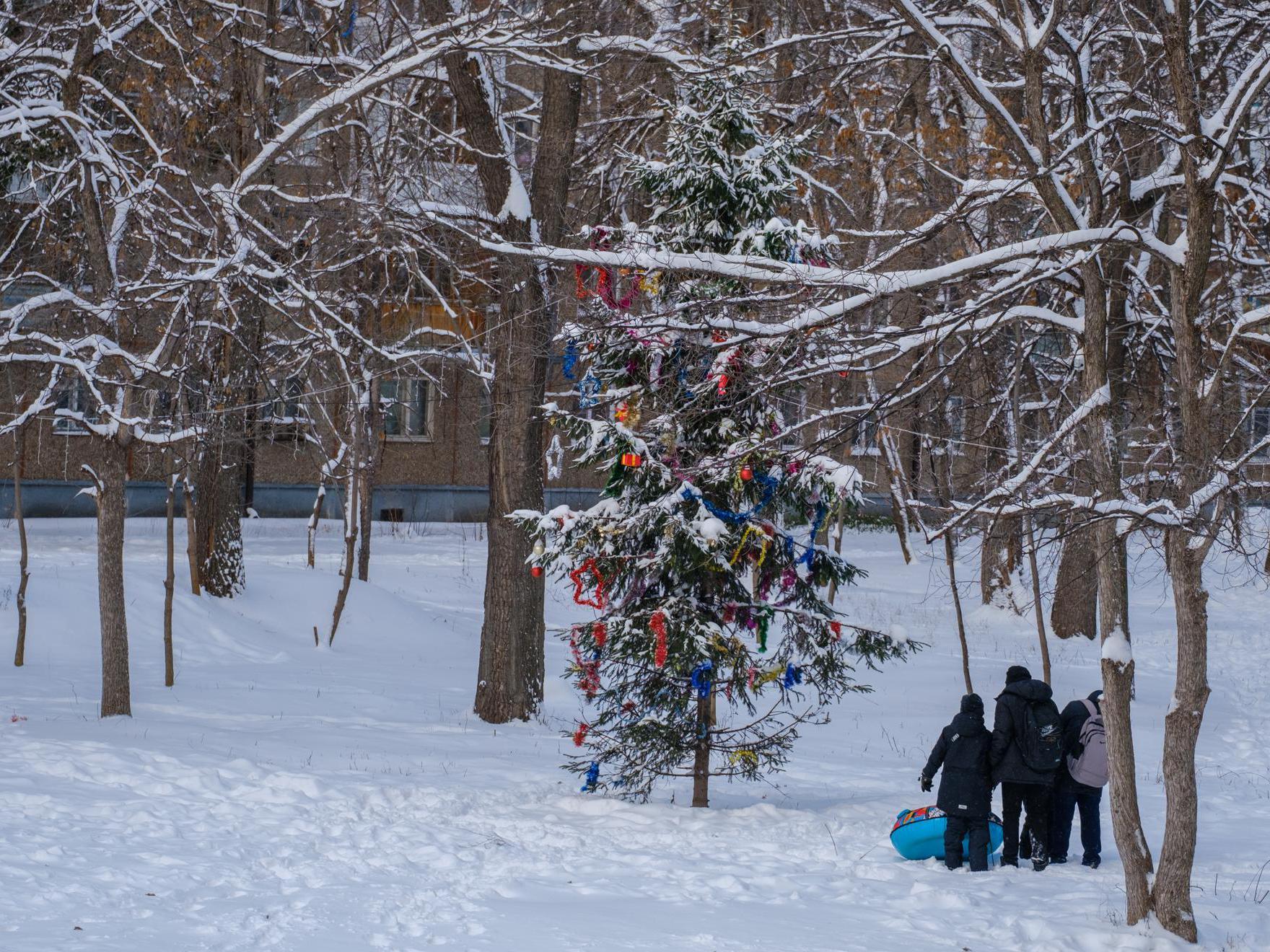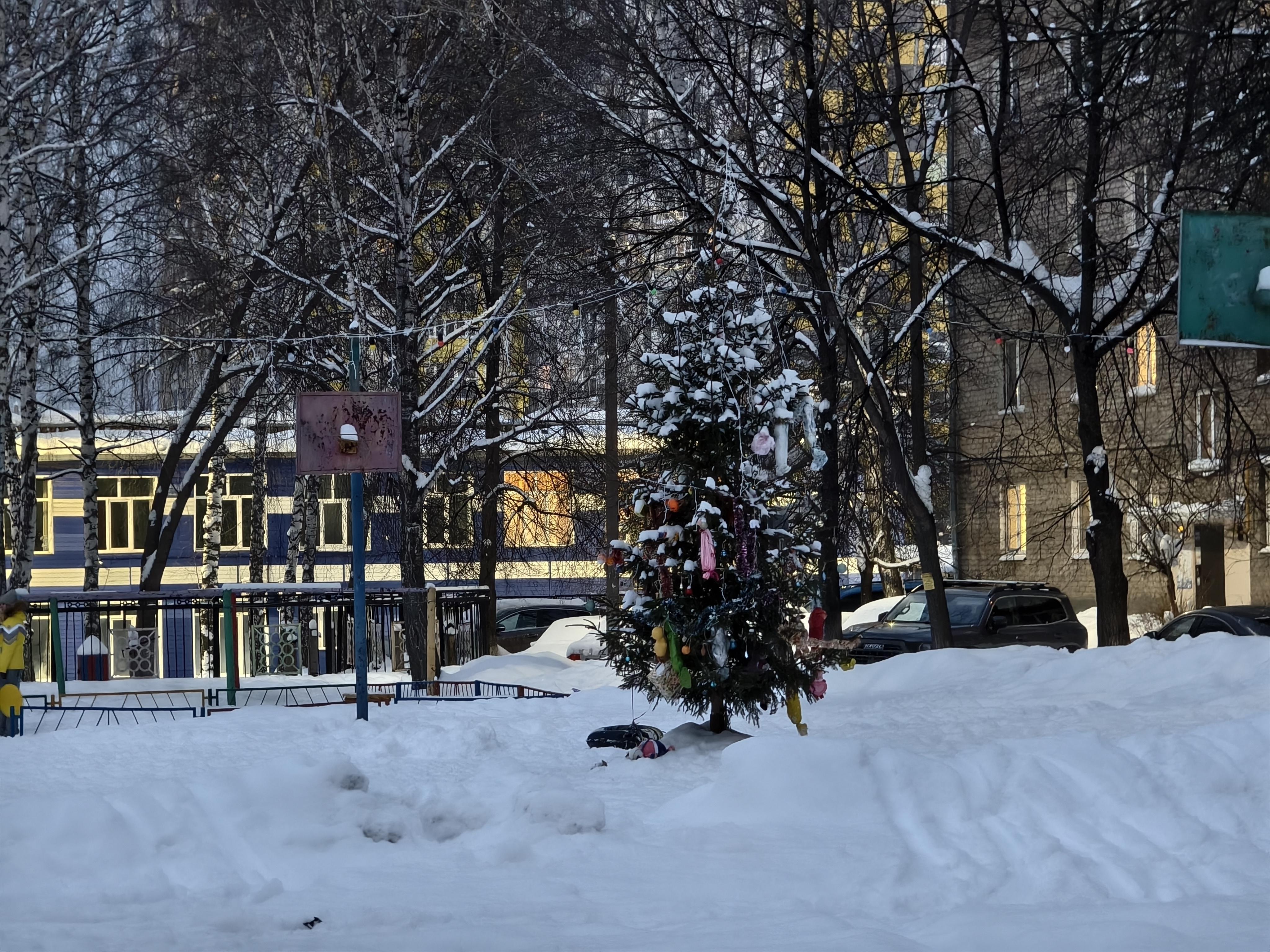 A photographer from the city portal UFA1.RU walked through courtyards and found that some of them are still decorated with New Year«s beauties—Christmas trees. In some places, these are living planted trees, and in others, they are brought in for the holiday period. This creates a special festive atmosphere that is hard to let go of.