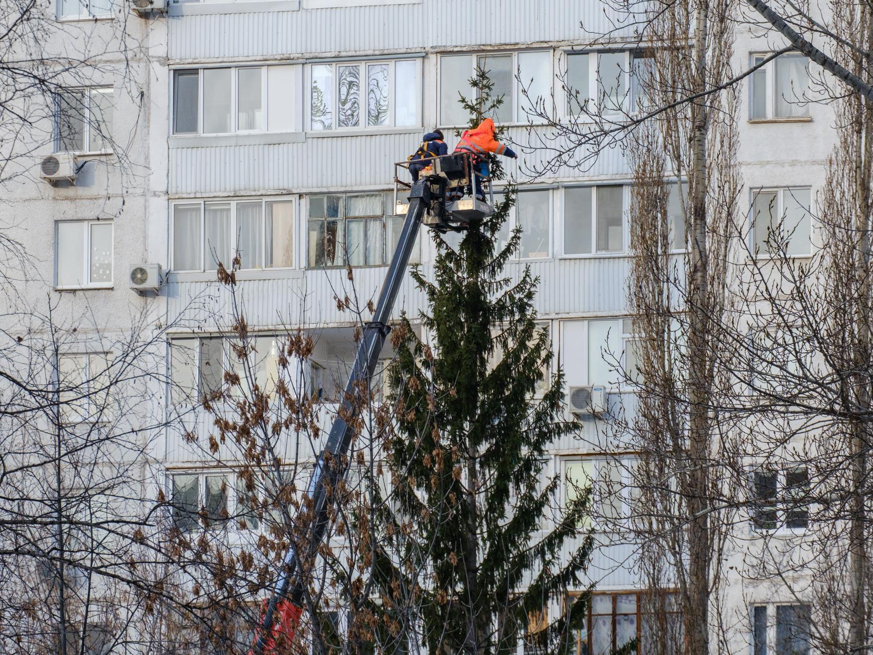 During one of the December reports, the photographer managed to catch the moment when employees of the local housing office were decorating a tree in the courtyard on Zorge Street. Then, they were hanging garlands on a huge forest beauty using a lift. That«s some scale!