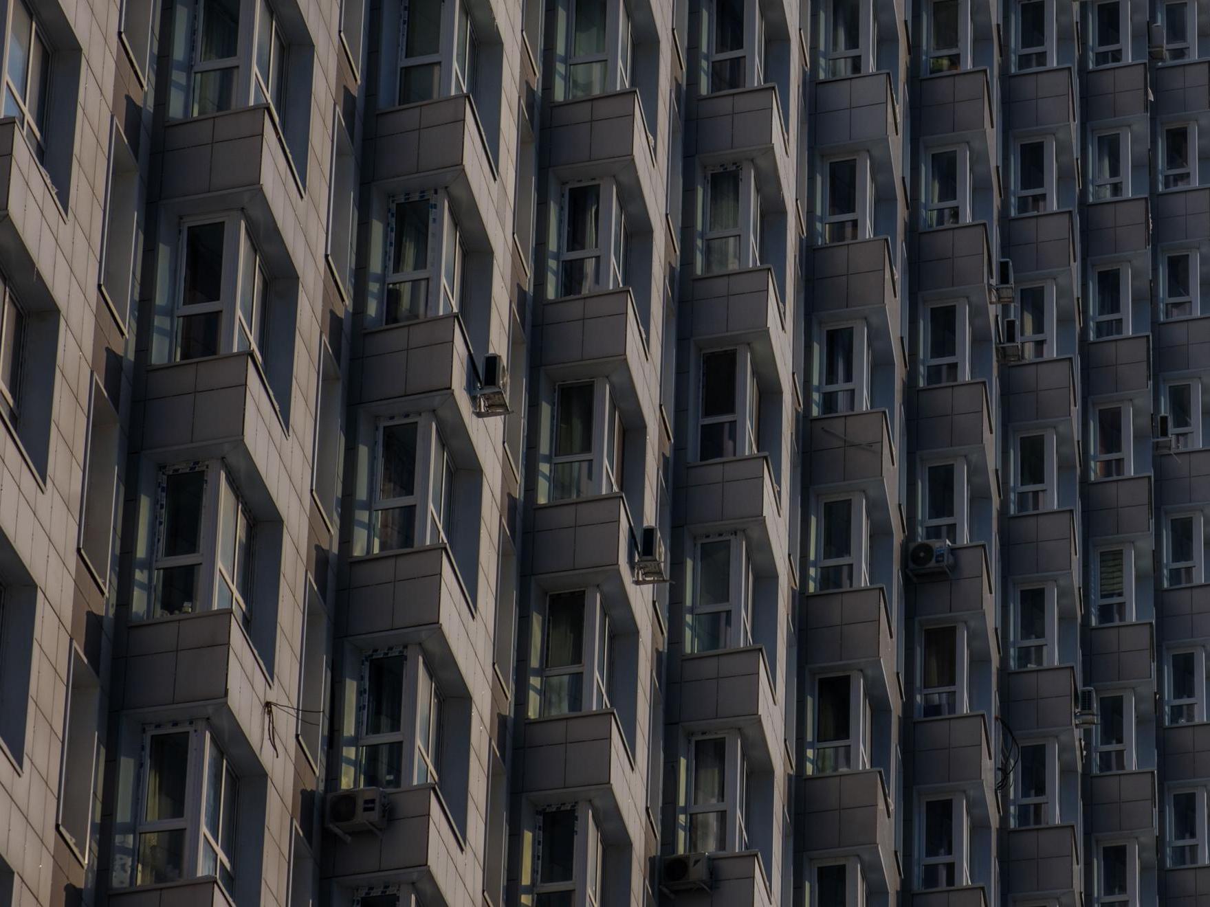Everything here is done in a European style, the buildings have different heights — the architect seems to be playing. There are no usual balconies; their place is taken by grilles for air conditioners.