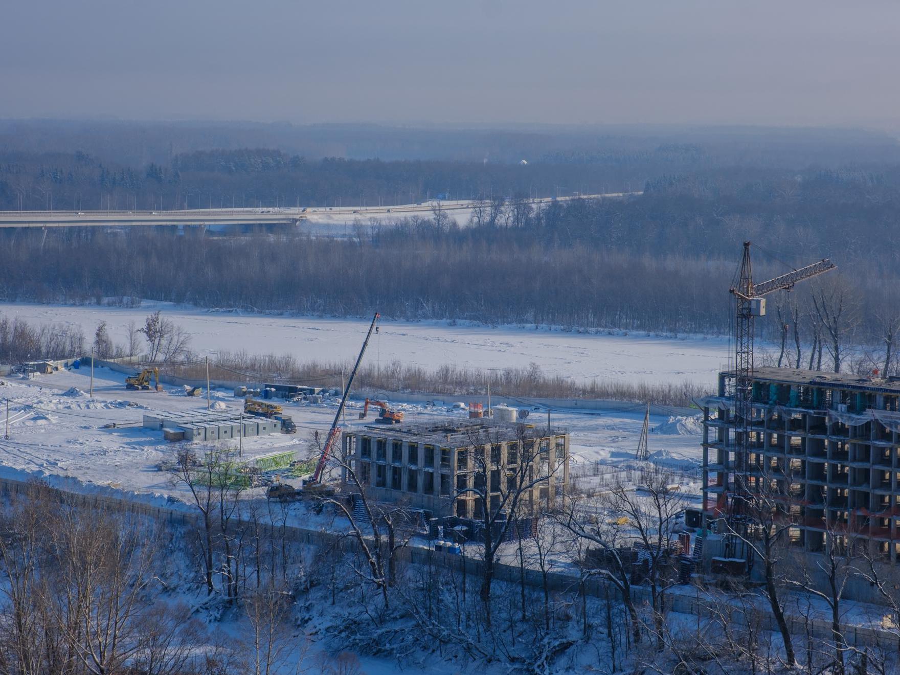The development of the peninsula at Kamenny Perevoz (Stone Crossing) is noticeable.