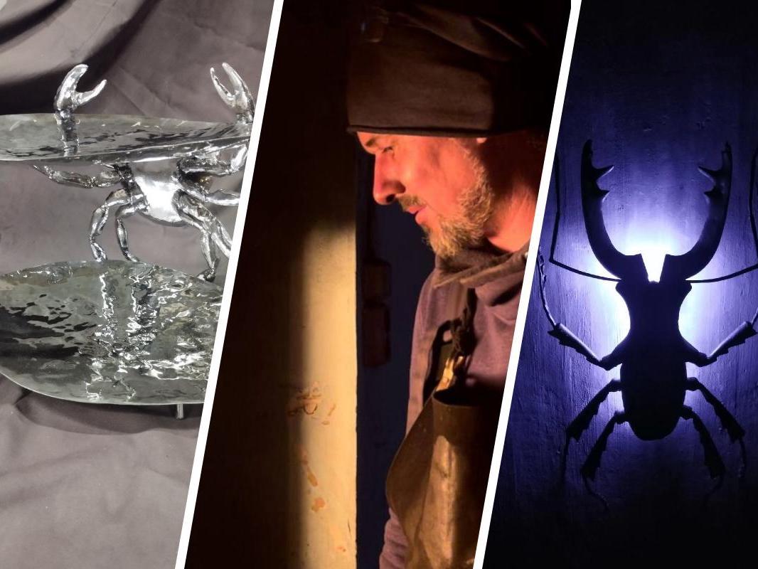 Vladimir Kashin creates authorial items from metal, including a crab dish for a restaurant and a beetle lamp.