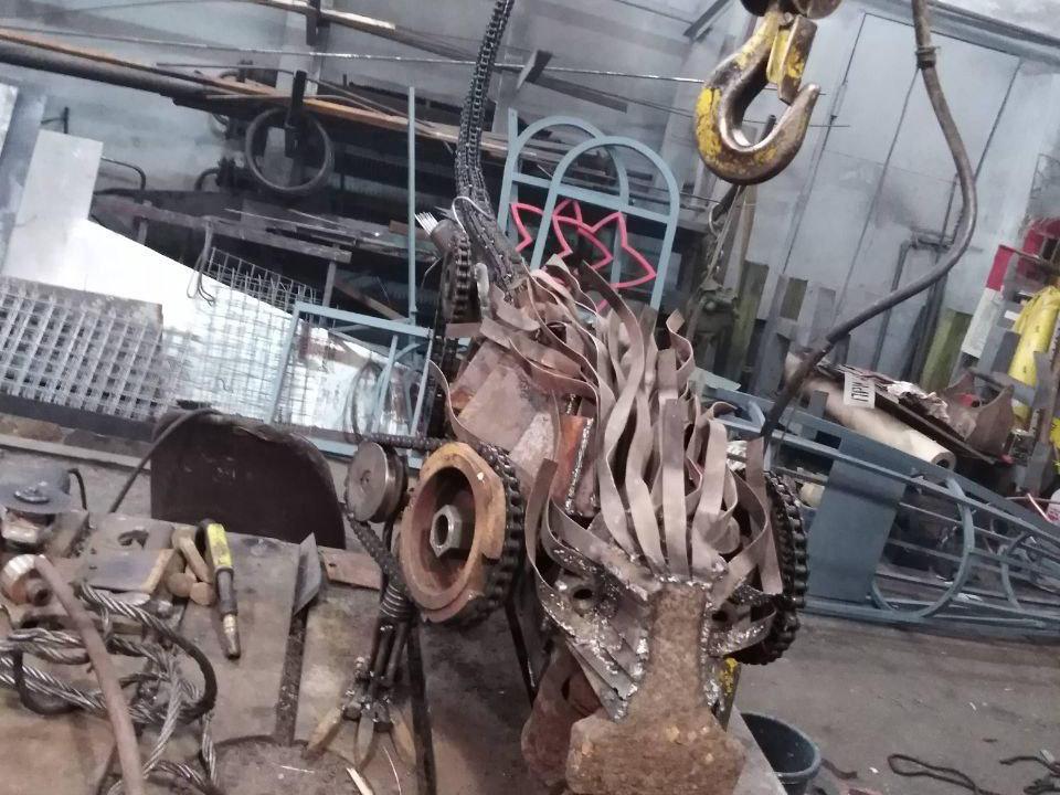 Vladimir made this lizard from railway scrap metal left by former workers of the Shpagin Plant.