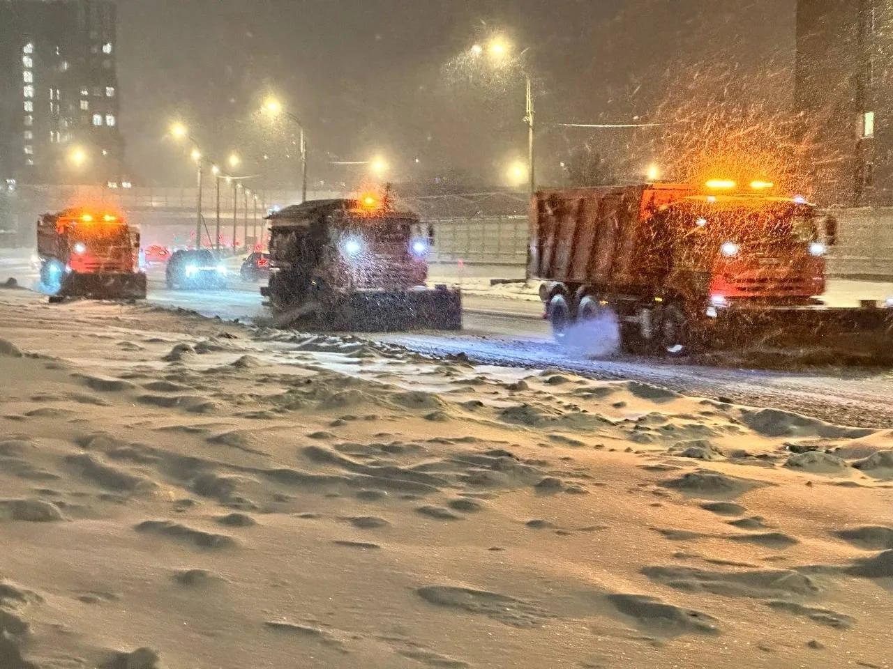 Freshly fallen snow was swept to the curbs for later removal. On Monday, 14,000 cubic meters of snow were removed from the city«s streets. The total volume of snow cleared this winter reached 1,056,000 cubic meters.