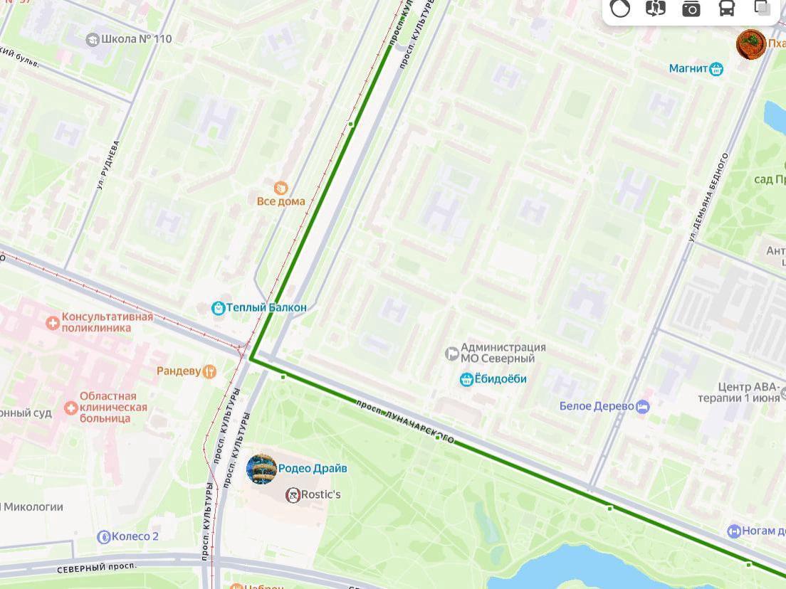 It is known that at the time of the accident the bus was traveling along Kultury Avenue from the direction of Severny Avenue, which does not correspond to its regular route. Besides the driver, there was one passenger in the vehicle. Representatives of the carrier were asked to comment on the incident.