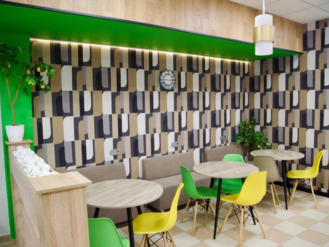 The cafe-dining hall was created as part of a full cycle of work — from concept development to final finishing. A special design project was conceived and implemented, aimed at making visitors feel cozy here, almost like at home. As a result of the large-scale modernization, the dining hall looks like a cozy cafe: beautiful comfortable furniture, flowers, books, modern interior, pleasant music, split systems. The dining hall occupies 152 m² and is designed for 75 seats.