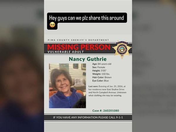 A missing person alert for Nancy Guthrie, age 84, released by authorities.