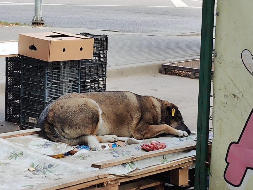 And what«s more: the »Molodezhny« market opposite the »Aksioma« shopping center in the Severny district has turned into a kennel. The pack has at least five dogs — I lose count trying to find detours. Well-fed bodies sleep in specially placed boxes, on empty counters, and even in chairs. Dogs with tags — officials brought them here, after washing budget money. The municipal shelter had not yet properly started working, but had already concluded state contracts: from October to December 2025 — for 13 million rubles (about $144,400 at current rates).