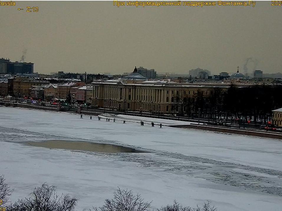 A panoramic webcam image shows the cold and snowy conditions in St Petersburg.